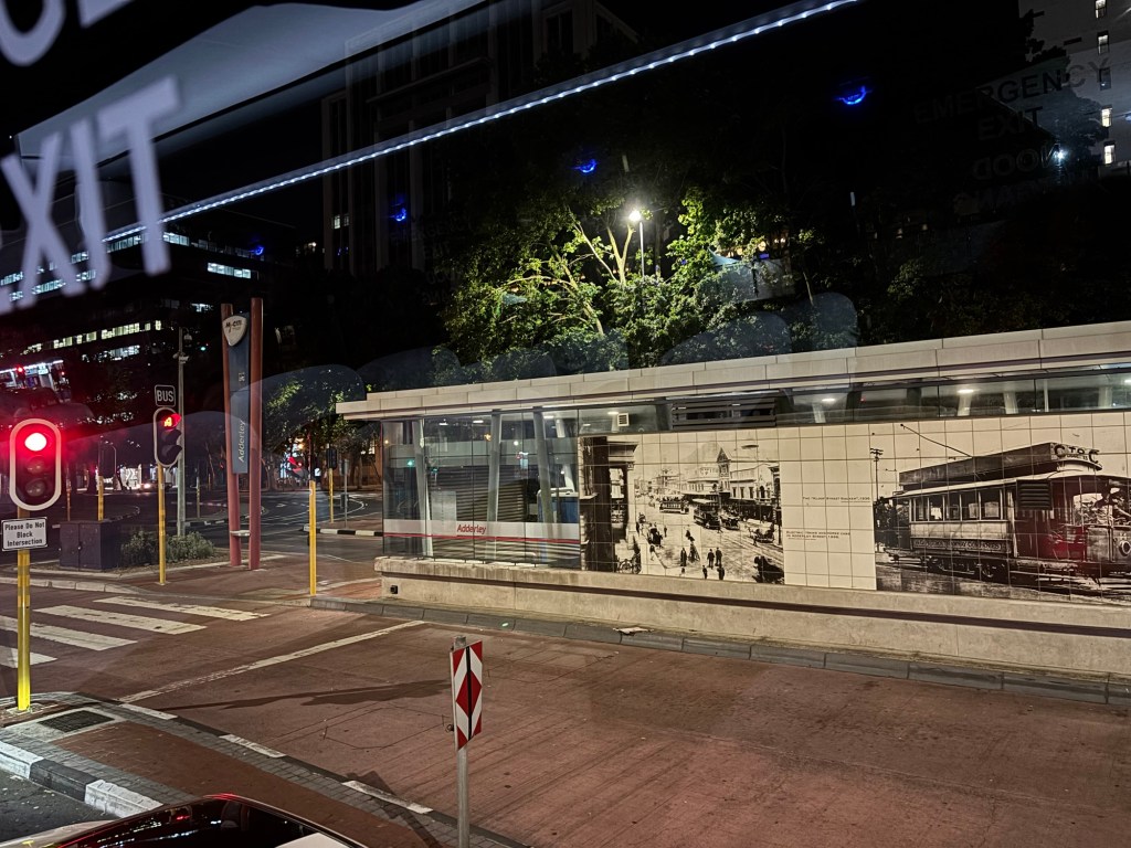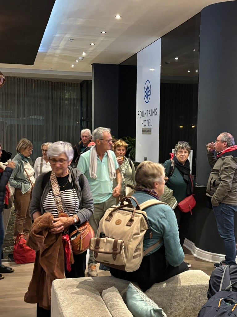 Sur la route vers lâhĂŽtel, la ville sâest dĂ©voilĂ©e par fragments : une enseigne lumineuse, un taxi filant dans lâobscuritĂ©, le profil lointain de la montagne ( Table Mountain) devinĂ© dans la pĂ©nombre. Peu de mots, juste le silence fatiguĂ© de notre groupe, les pensĂ©es qui vagabondent entre lâexcitation et le besoin de sommeil. Dans le hall, quelques sourires, une clĂ©, une chambre calme. Demain commencera vraiment le voyage, mais dĂ©jĂ , quelque chose a changĂ©. Nous y sommes!
